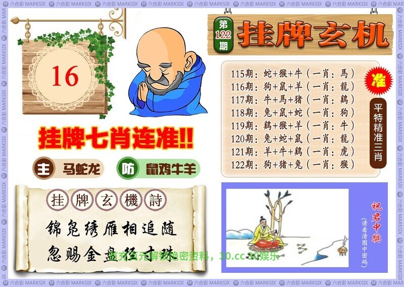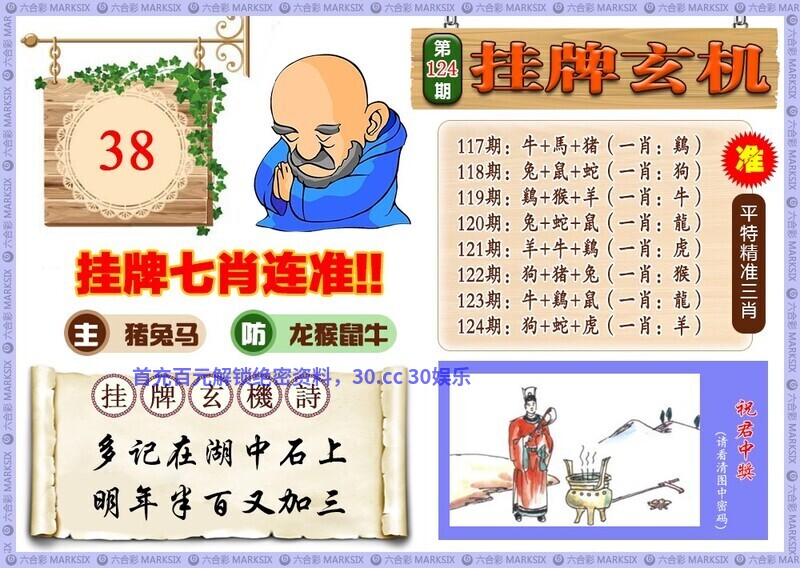 126期挂历诗:牛业蛇到鸡发财,神算金牌玄空数。